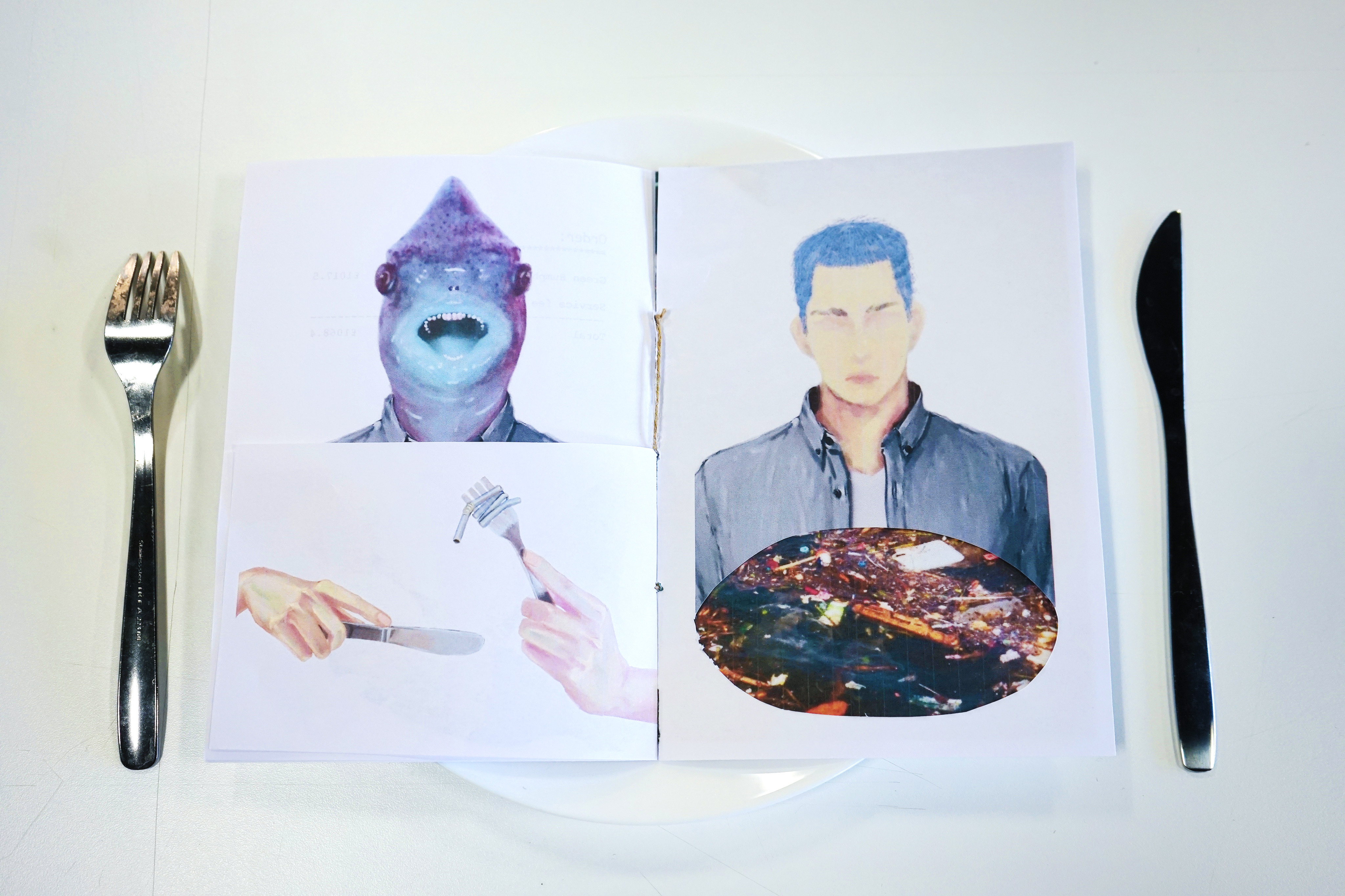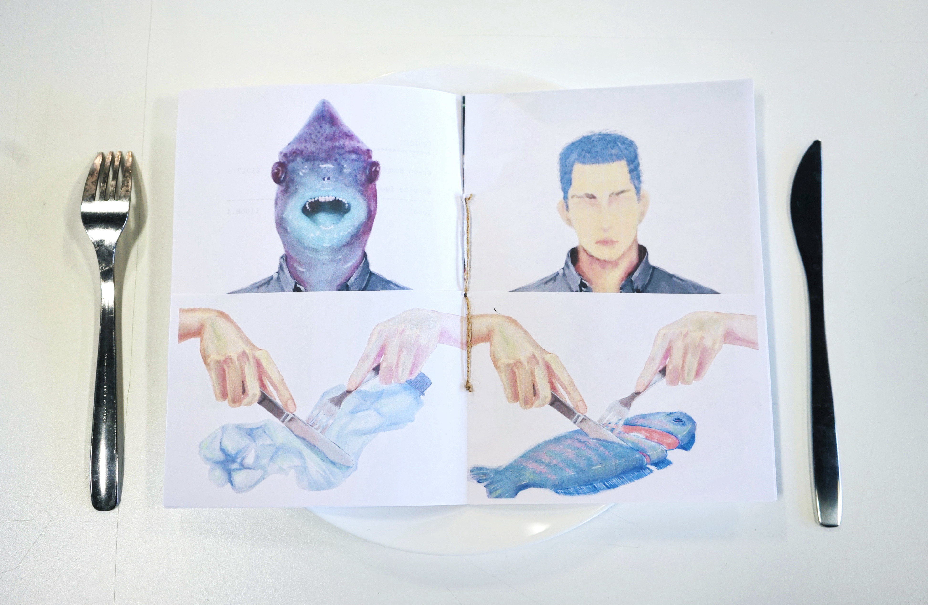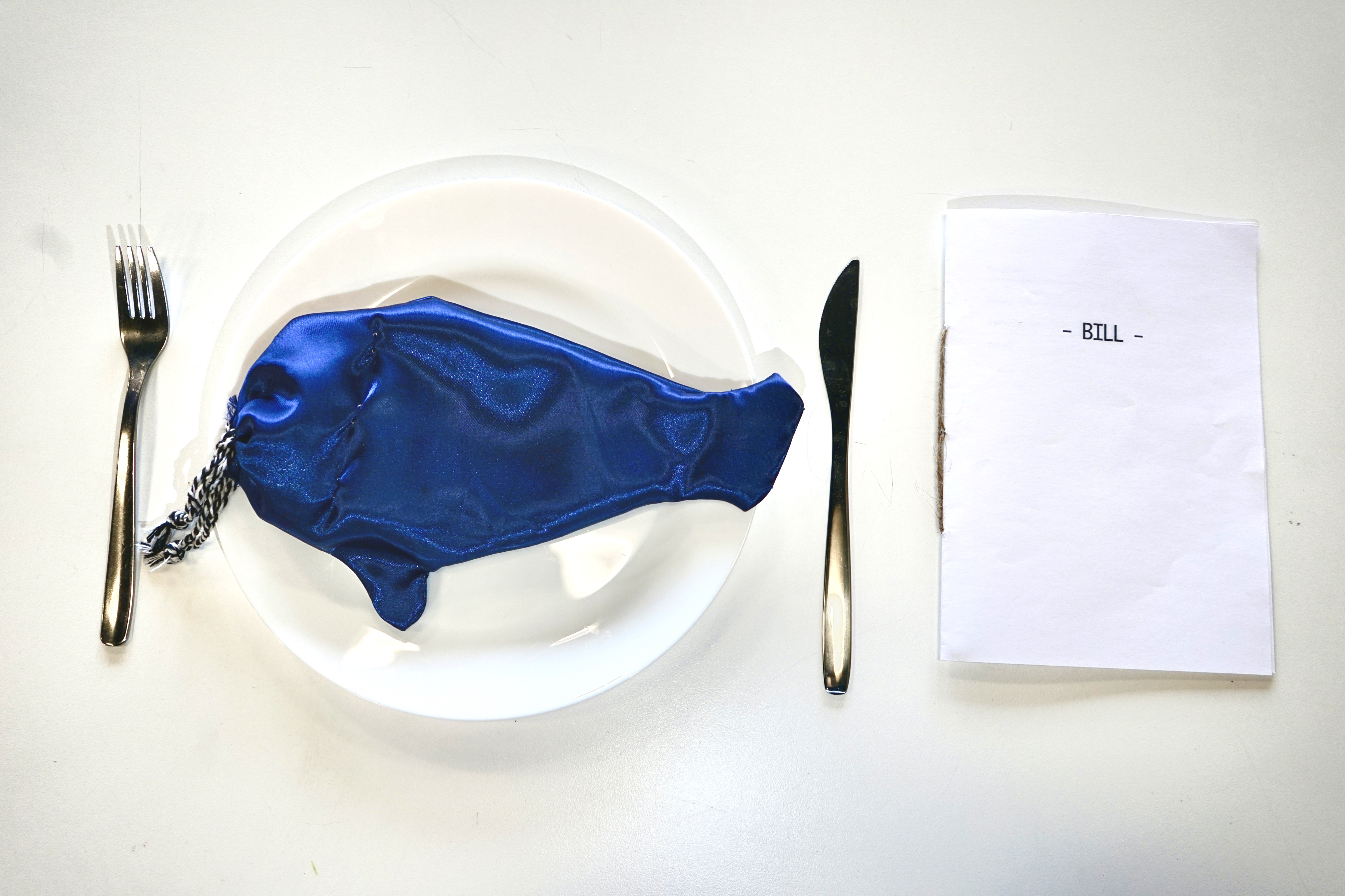 “What you see in front of you is an expensive dish of blue-headed parrot fish, a fish with tender, creamy flesh. Don't be surprised if you cut the belly of the fish and find plastic waste inside - it's its food. On the right-hand side is your bill, which totals £1068.40.”